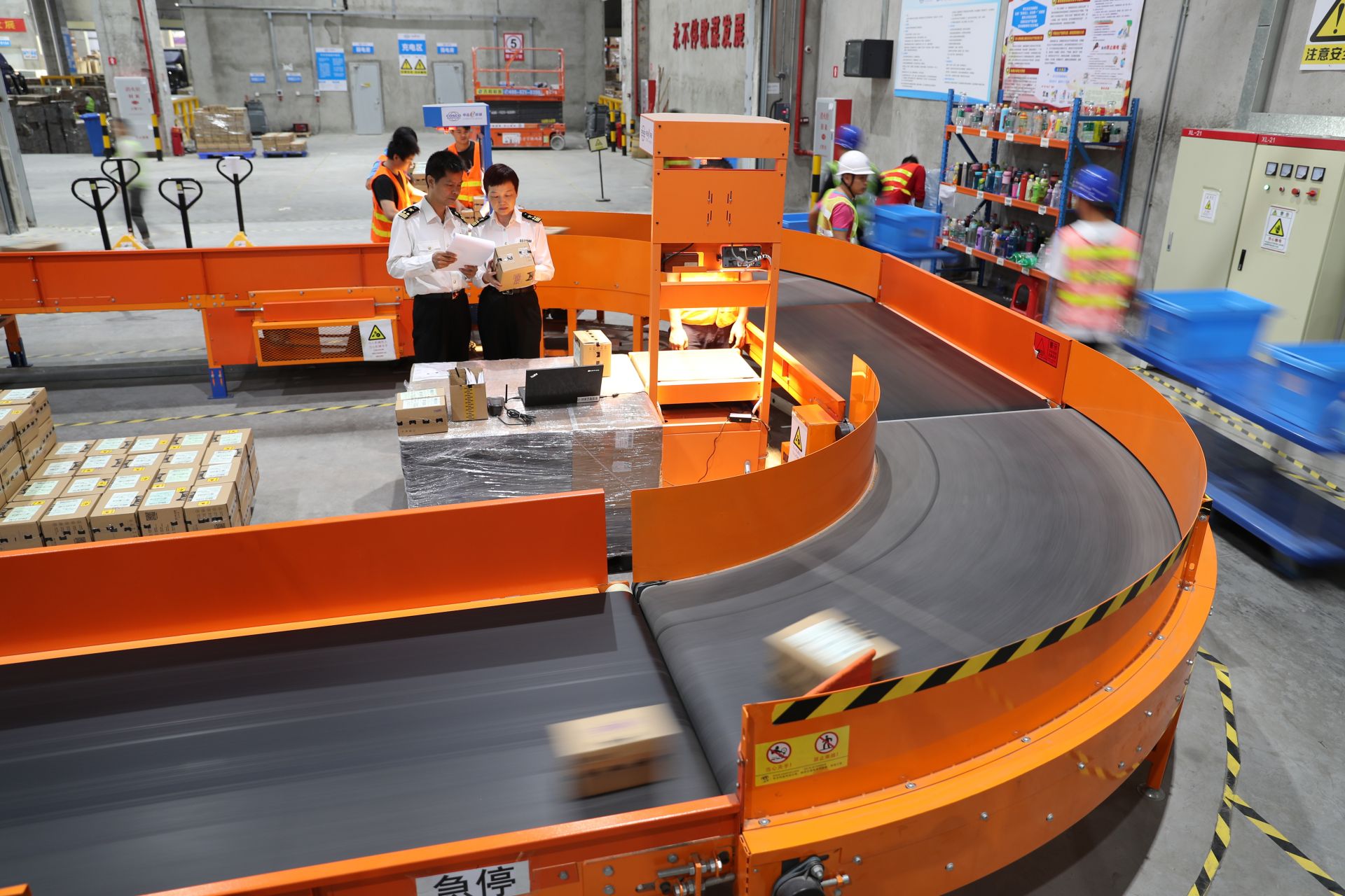 廣州海關所屬南沙海關關員在南沙自貿(mào)試驗區(qū)內(nèi)的跨境電商出口退貨中心倉進行監(jiān)管。(資料圖)