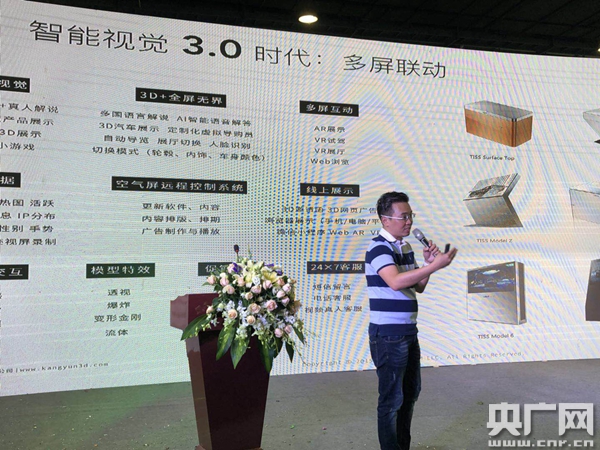 當(dāng)前先進(jìn)、不斷迭代的3D“黑科技”產(chǎn)品正以飛速的步伐深入各個產(chǎn)業(yè),在不久的將來,當(dāng)眼見的所有事物3D化,真正進(jìn)入到視覺智能3.0時代時,人人都能感受到這一波“黑科技”所帶來的震撼,以及給生活帶來的便利。在展會現(xiàn)場,康云科技向觀眾展示了汽車多維視覺智能服務(wù)平臺,在一塊虛擬屏幕前,通過體感、手勢、觸摸、眼球移動等多種方式與TISS屏內(nèi)容交互,用戶在線如身臨其境地看車、選車,360度全景查看汽車內(nèi)飾,若想看汽車輪轂、內(nèi)飾、車身顏色等,也能自由切換……據(jù)悉,目前這一套新系統(tǒng)已在廣州4S店落地應(yīng)用,它可實(shí)現(xiàn)人工智能3D科技與汽車銷售完美融合?!斑@套黑科技仍然是基于智能3D掃描技術(shù),將線下實(shí)體的展廳、汽車等進(jìn)行掃描,導(dǎo)入服務(wù)器建模渲染。”專家認(rèn)為,智能系統(tǒng)針對汽車的特性,加入360度全景汽車內(nèi)飾查看,并且加上人臉識別、智能導(dǎo)購等模式,VR展示與VR試駕體驗(yàn),用空氣屏承載的多維視覺展示途徑,促進(jìn)用戶與產(chǎn)品更好互動。