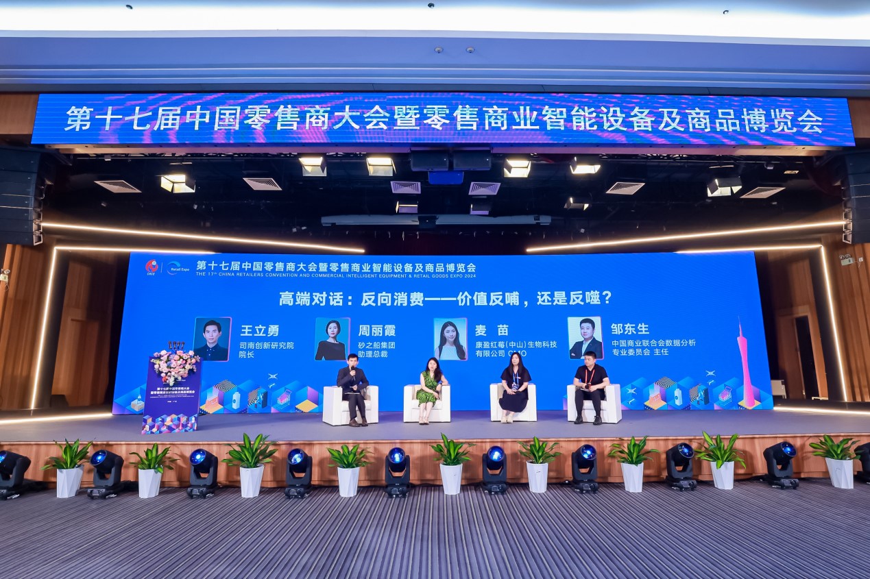 在高端對話環(huán)節(jié),司南創(chuàng)新研究院院長王立勇、砂之船集團助理總裁兼分公司總經(jīng)理周麗霞、康盈紅莓(中山)生物科技有限公司CMO麥苗、中國商業(yè)聯(lián)合會數(shù)據(jù)分析專業(yè)委員會主任鄒東生就“反向消費-價值反哺,還是反噬?”這一話題進(jìn)行了深入討論,為與會者提供了獨特的視角和思考。